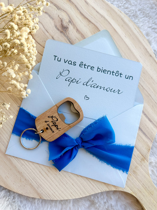 Annonce de grossesse décapsuleur/bouchon bouteille et carte pour papi d'amour bleu