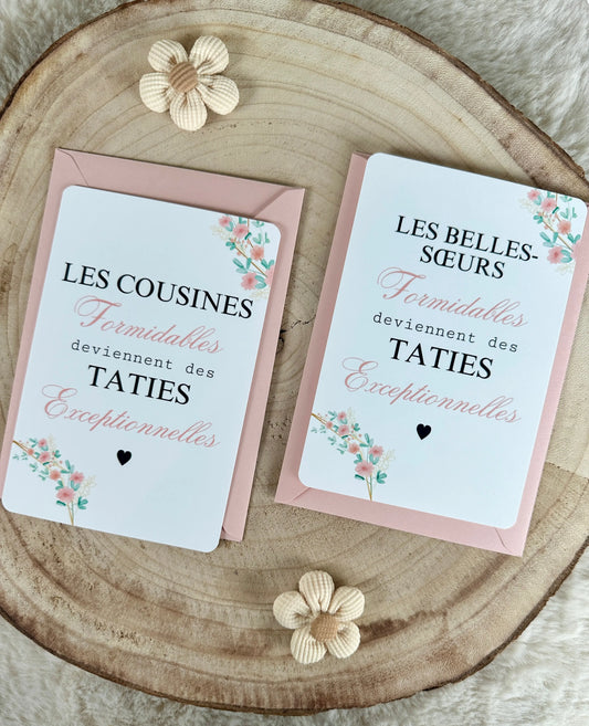 Carte annonce de grossesse tata tatie , sœur, belle-sœur, cousines, amies