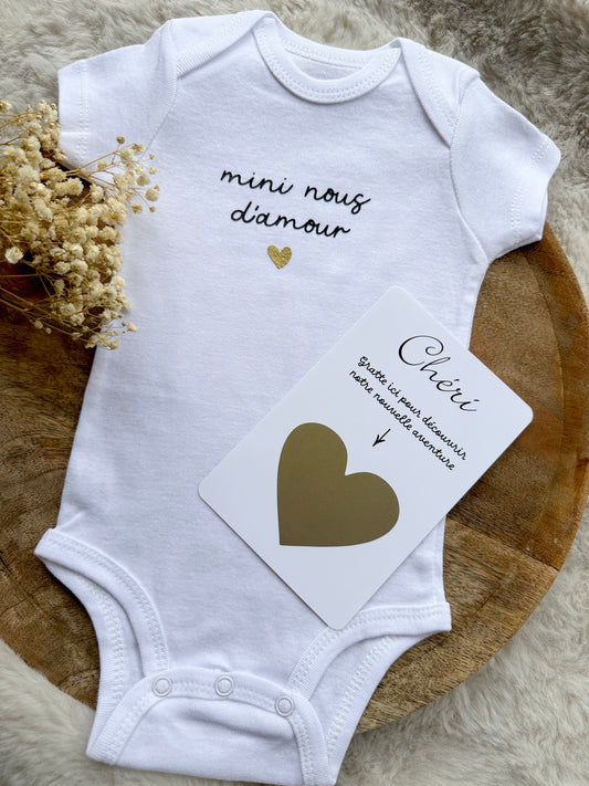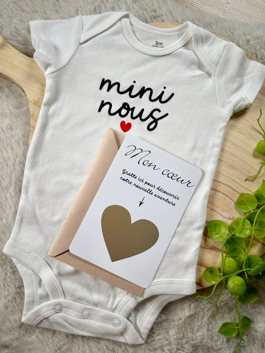 Carte annonce de grossesse mini nous futur papa avec body et carte a gratter