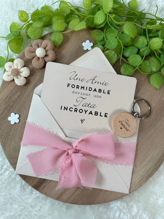 Annonce grossesse carte porte clé rose clair pour tata (soeur, meilleure amie, cousine, amie)