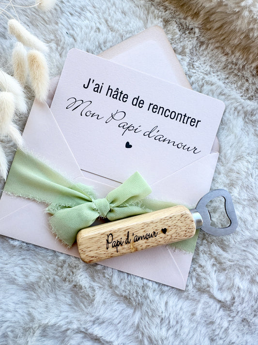 Annonce grossesse papi carte avec petit porte clé en bois pour papi d’amour