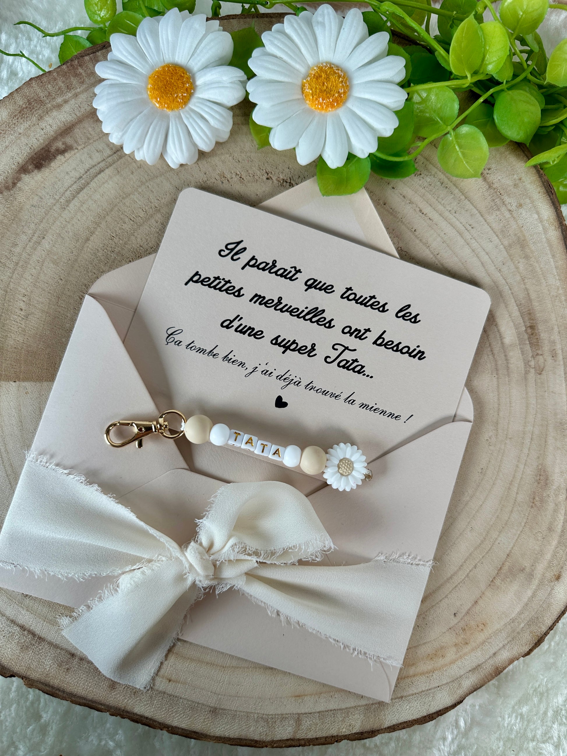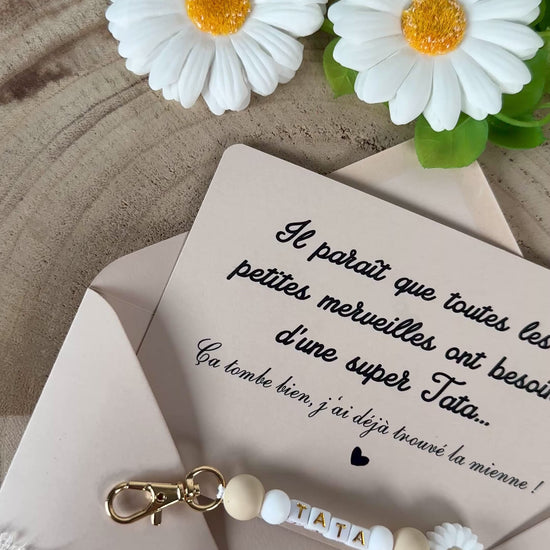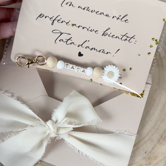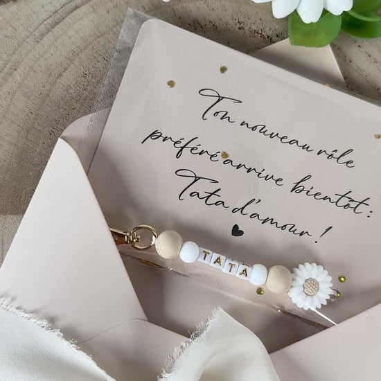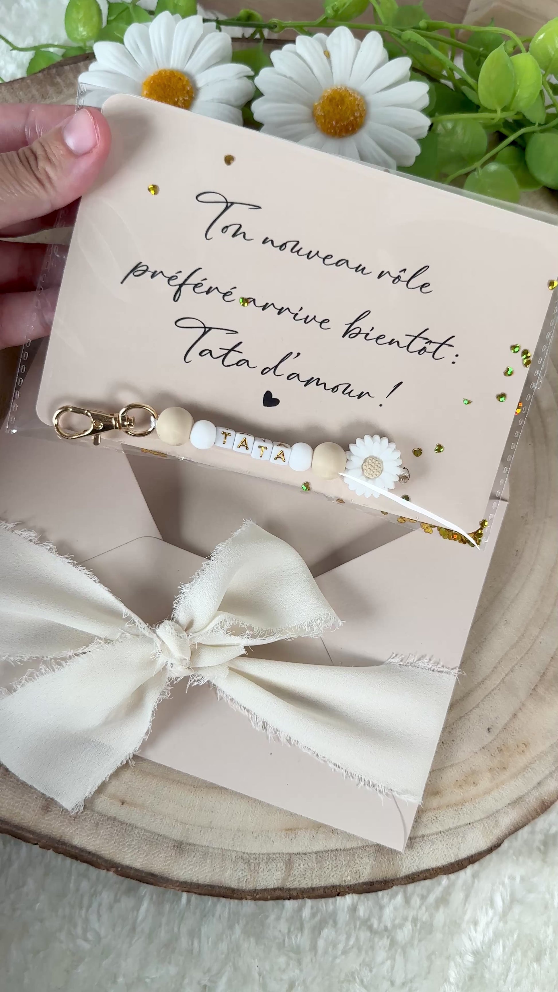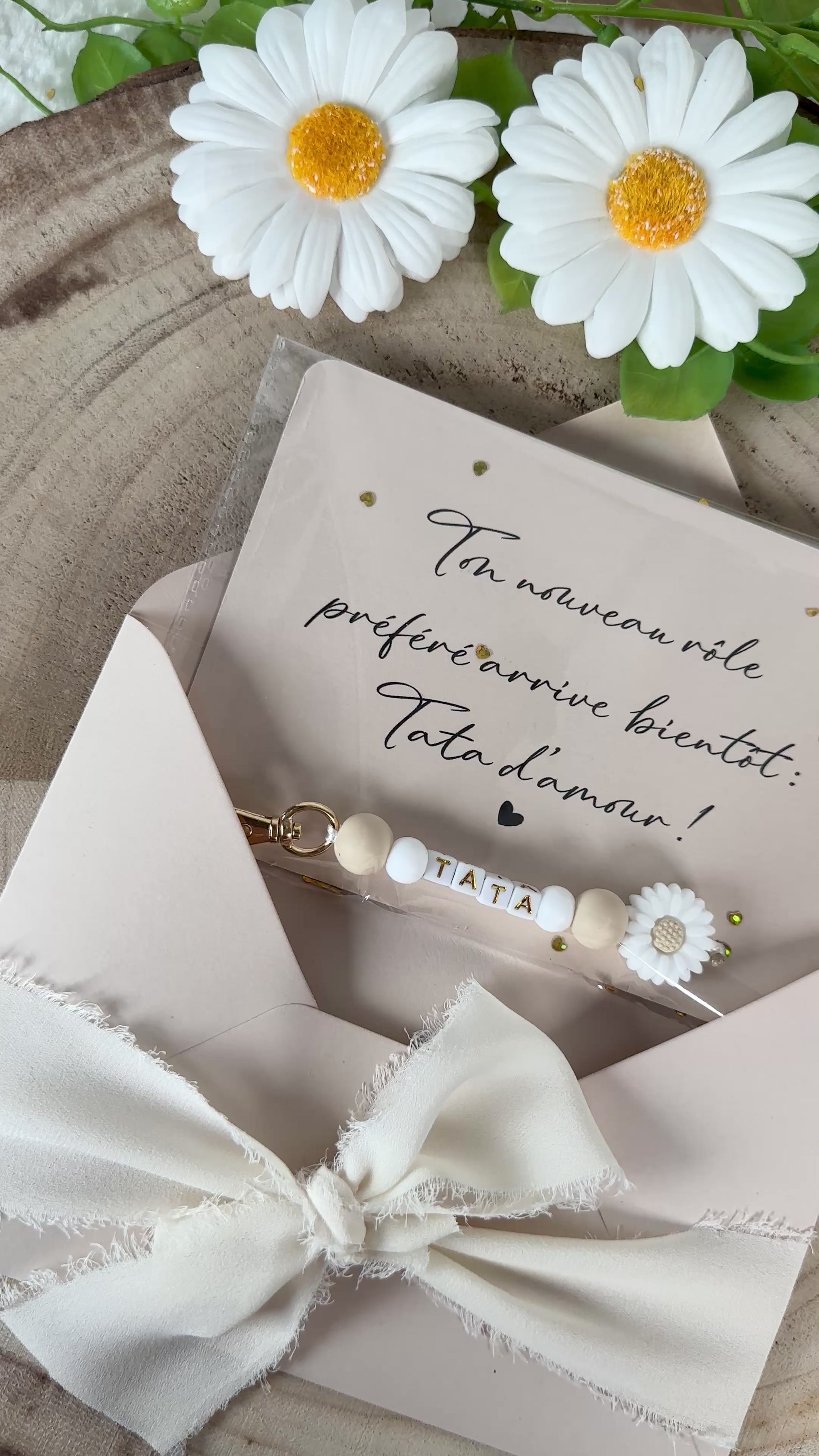 Faites une annonce inoubliable avec cette jolie carte accompagnée d’un porte-clés. Une façon tendre et originale de révéler votre grossesse à une future tata qui compte tant pour vous !