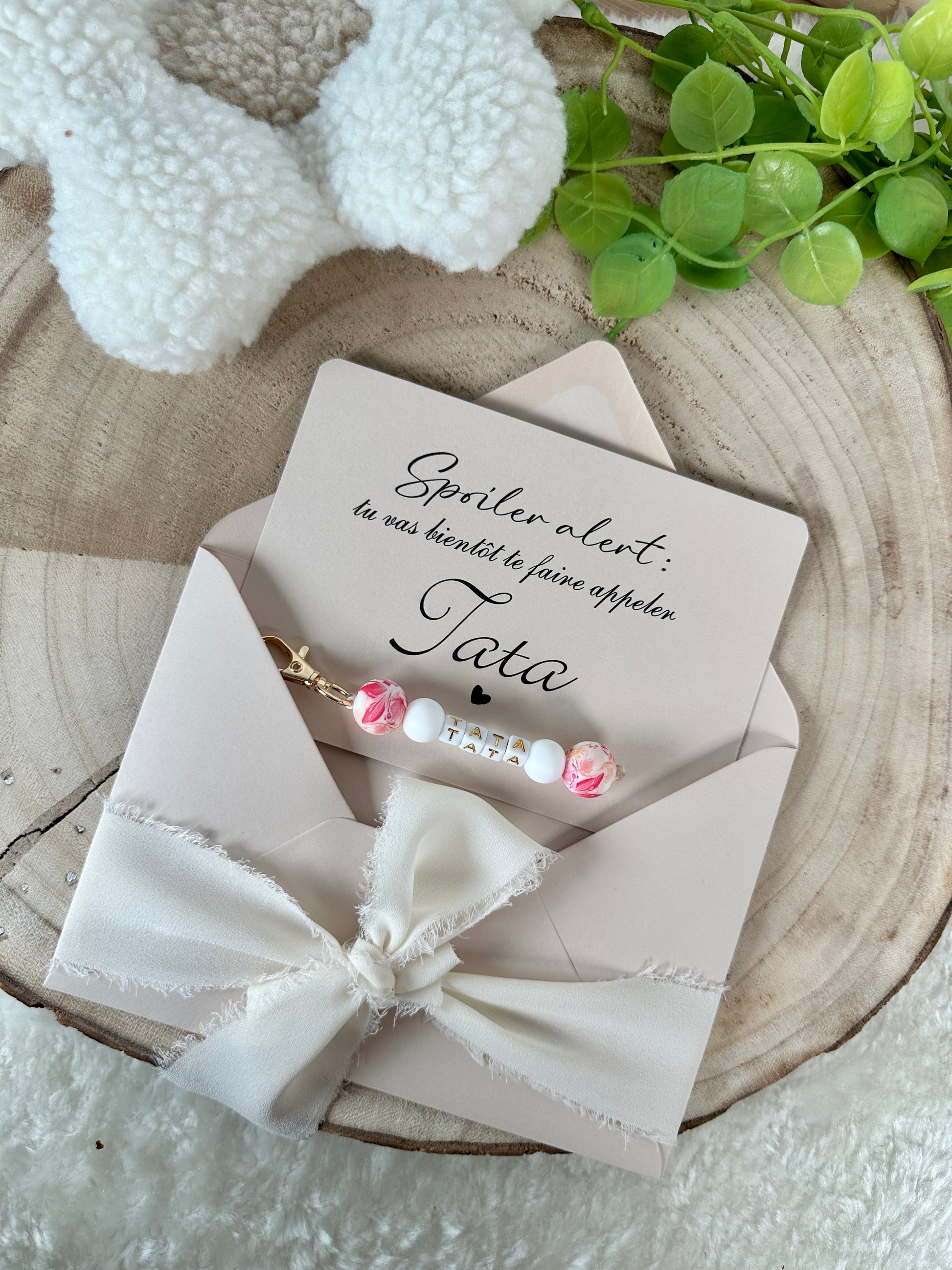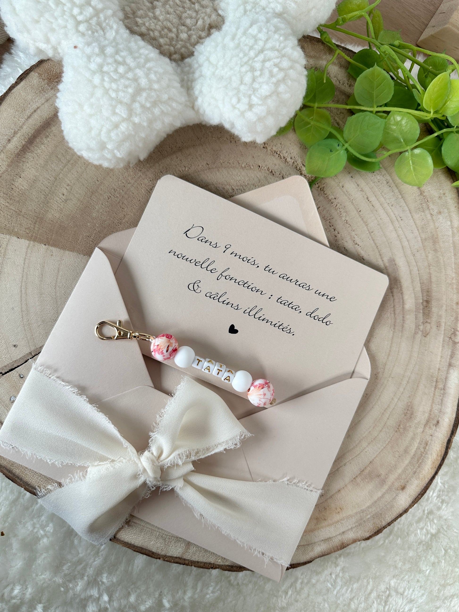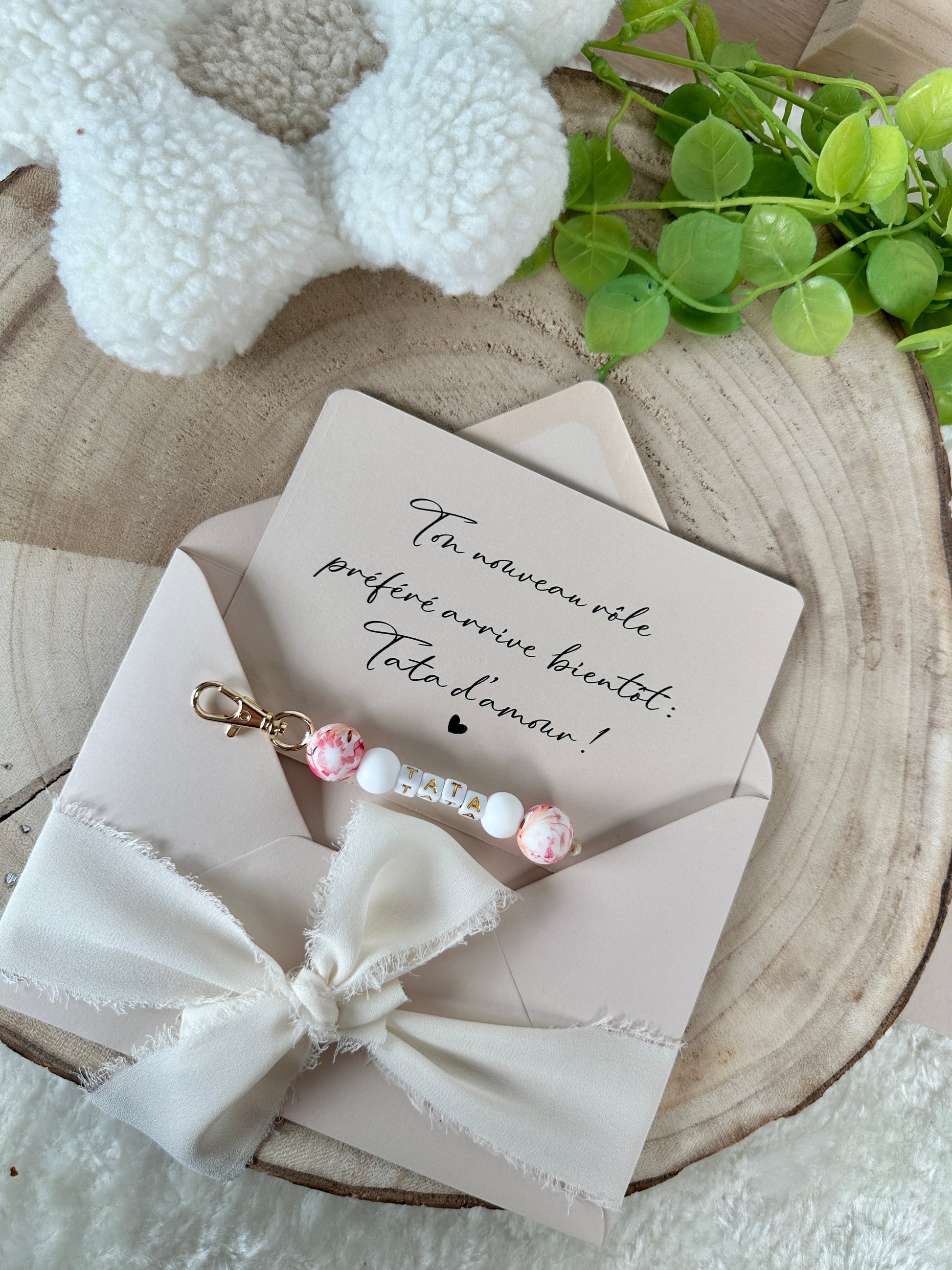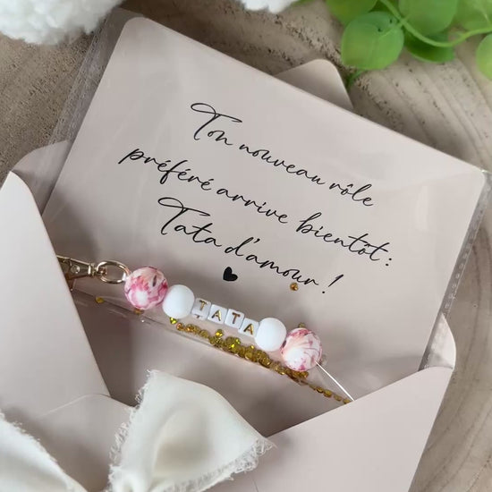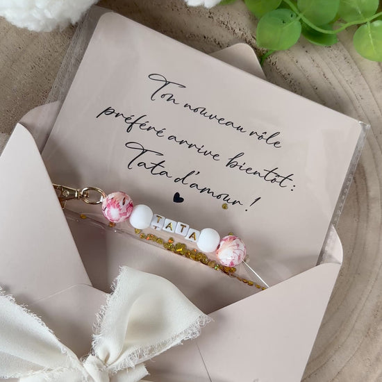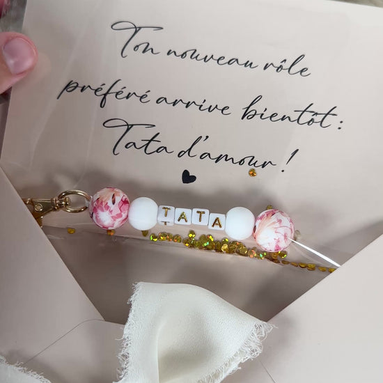 Annonce grossesse carte porte clé perle tata rouge orange