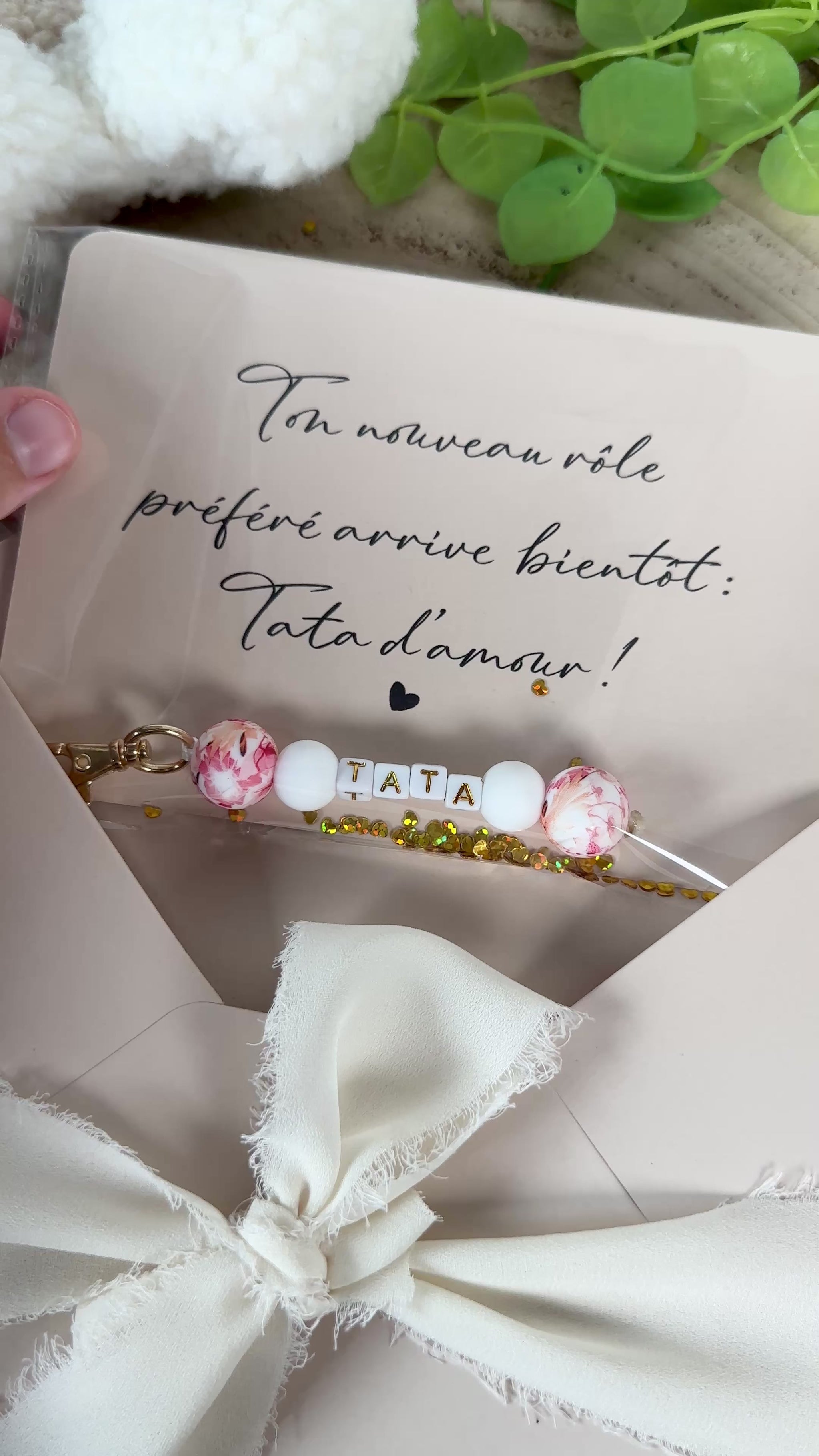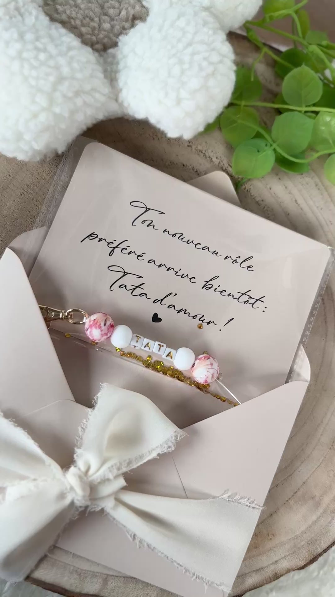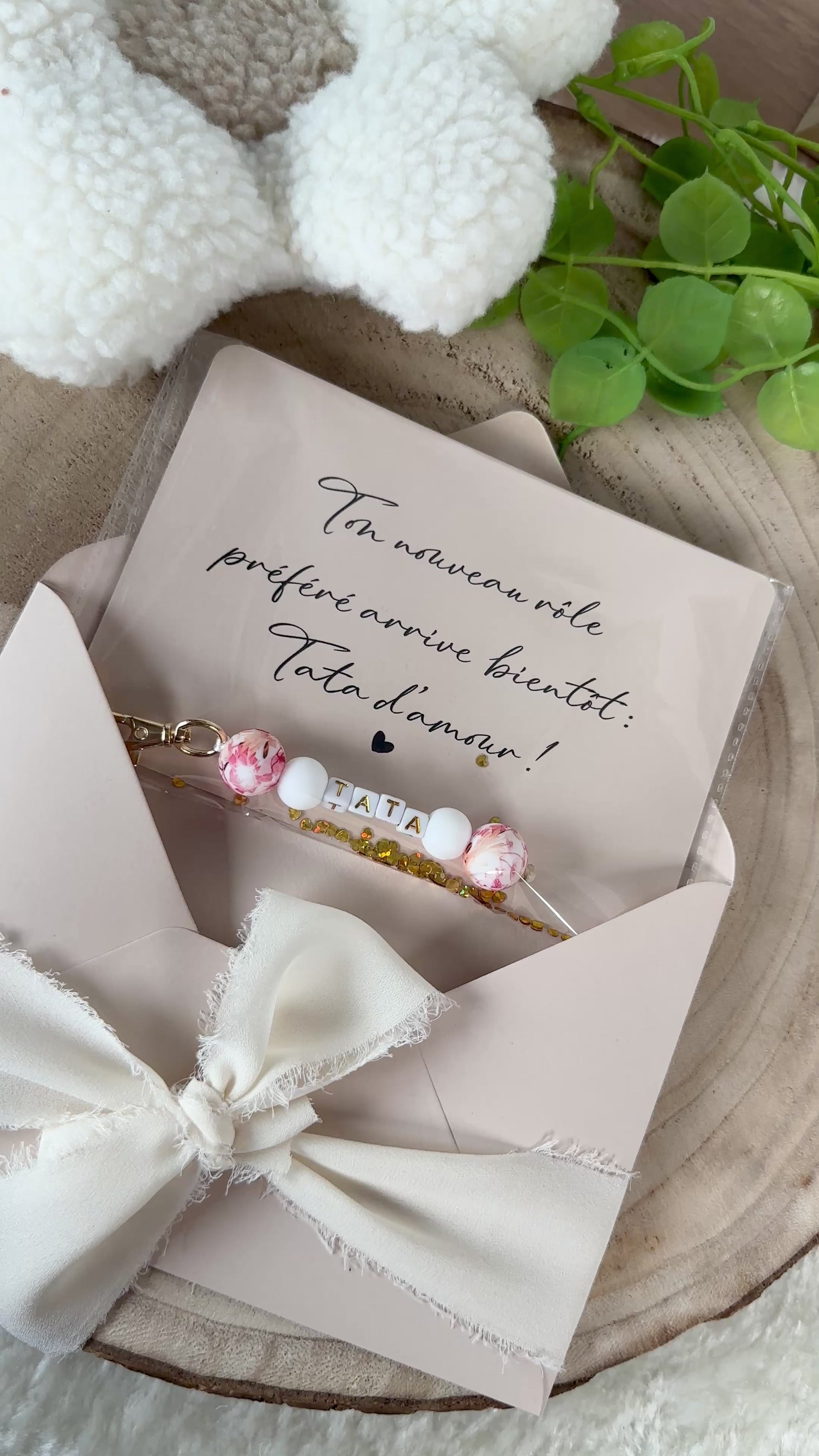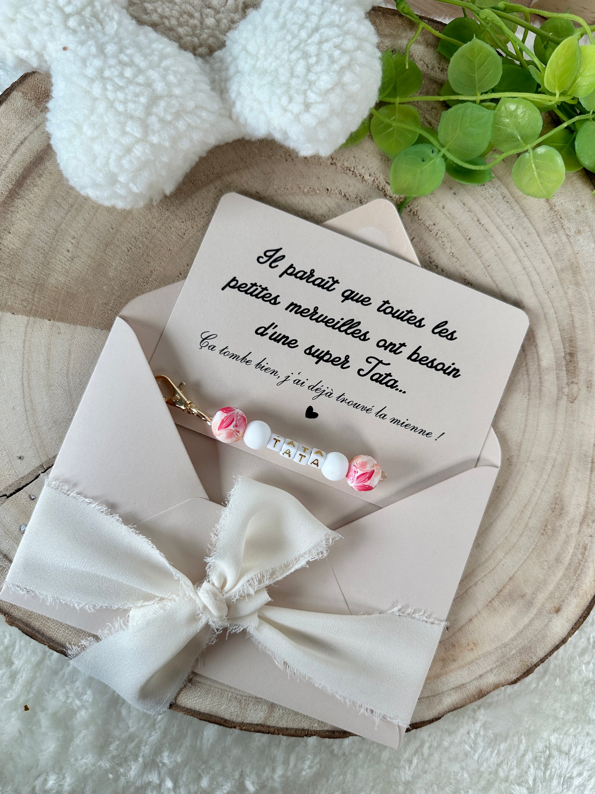 Annonce grossesse carte porte clé perle tata rouge orange
