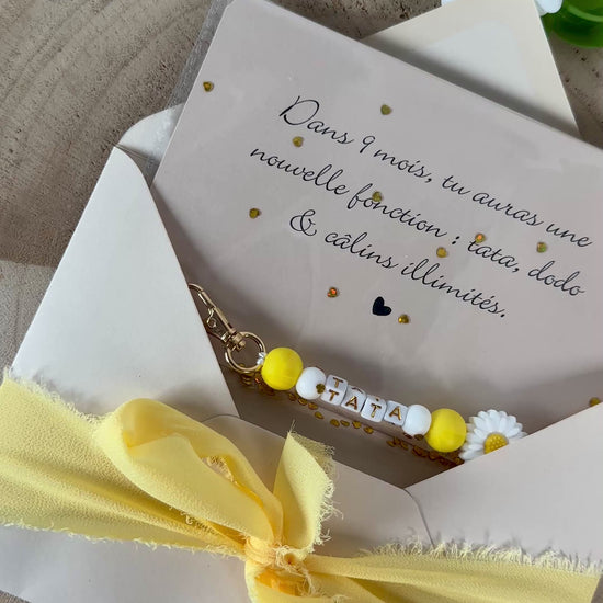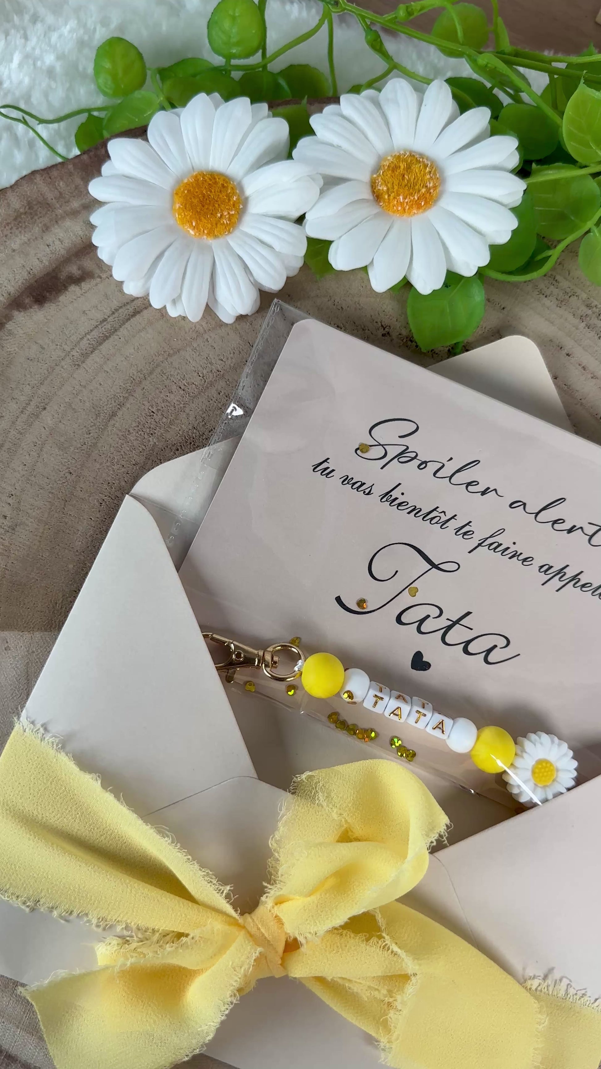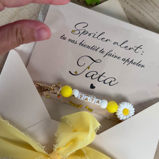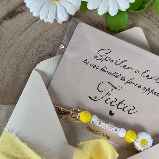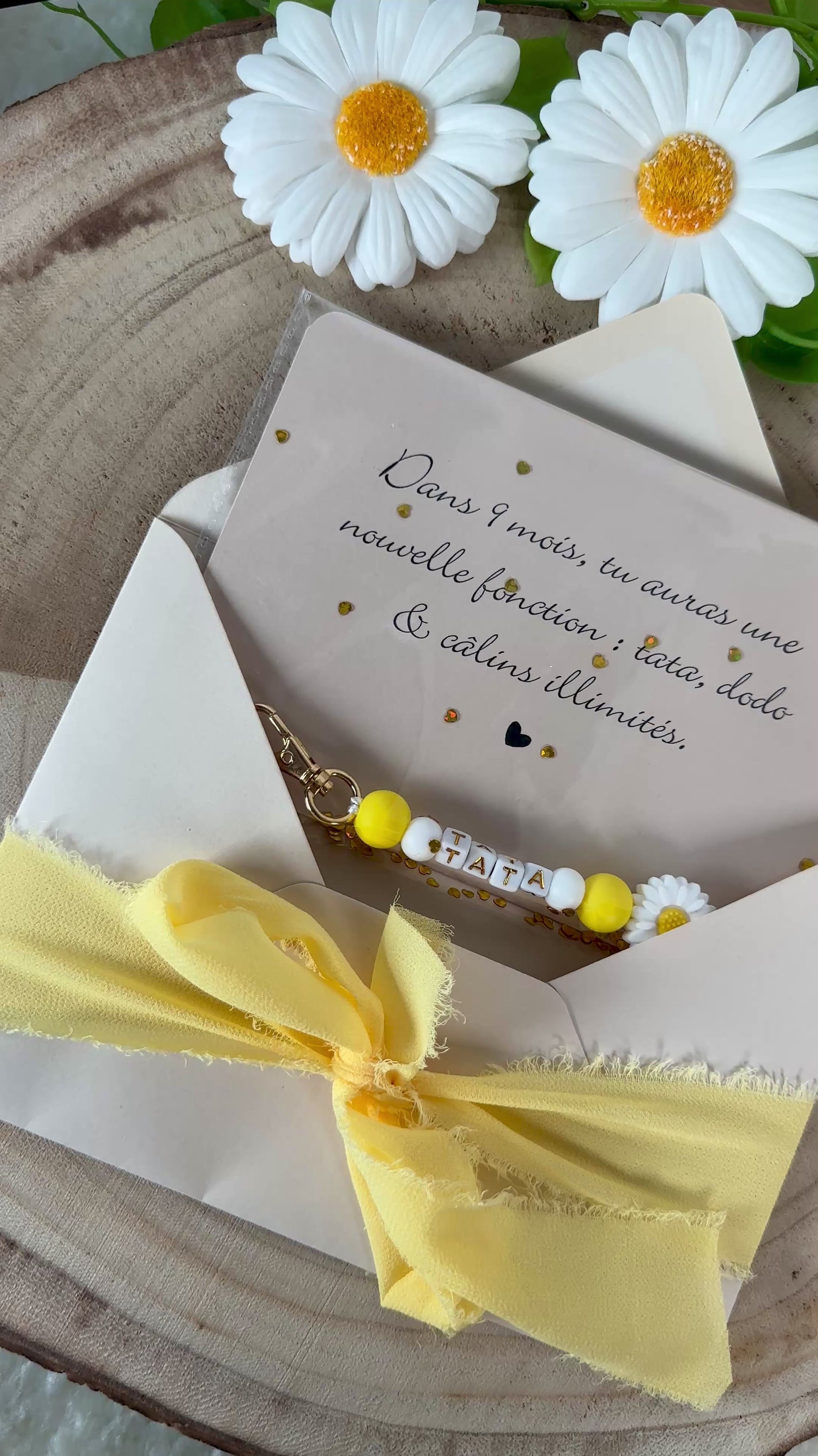 Faites une annonce inoubliable avec cette jolie carte accompagnée d’un porte-clés. Une façon tendre et originale de révéler votre grossesse à une future tata qui compte tant pour vous !