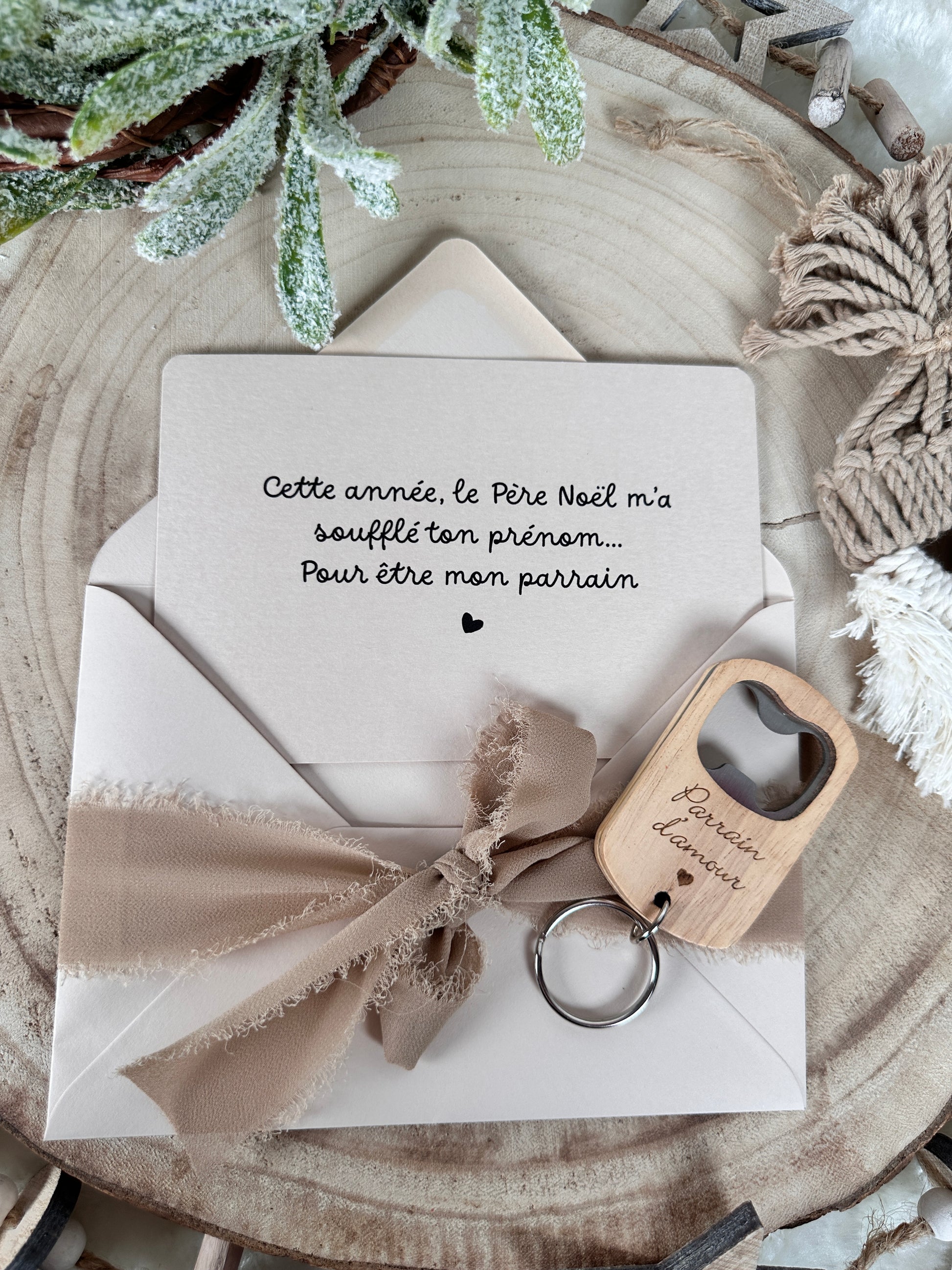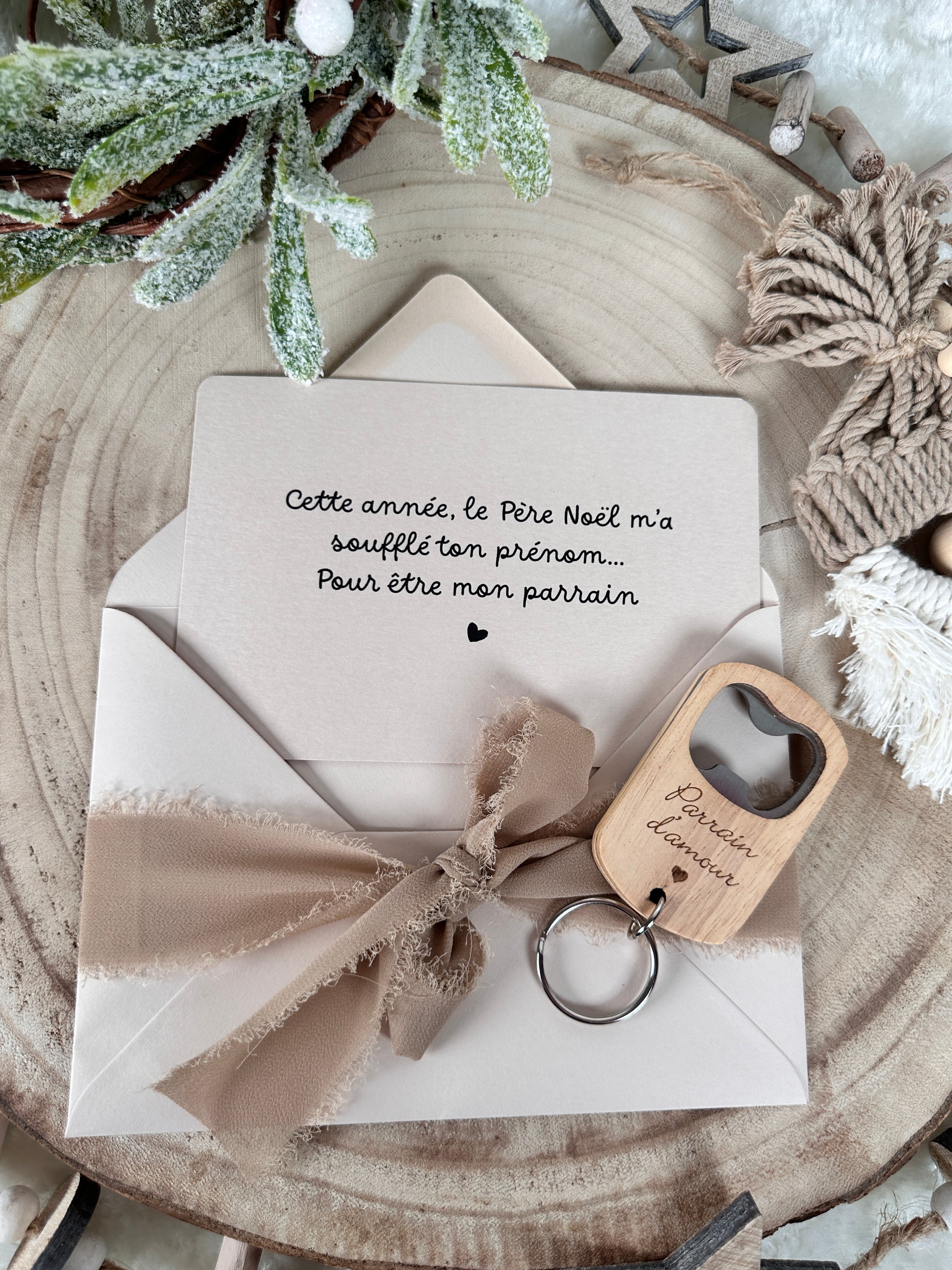 Annonce grossesse, demande parrain carte décapsuleur simple ou porte clé gravé “Parrain d’amour”