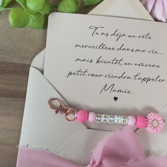 • Un porte-clés en perles, avec l’inscription “Mamie”, un souvenir qu’elle pourra garder précieusement.